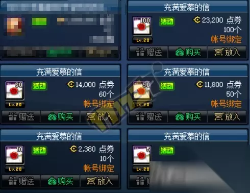 魔盒被充满爱慕的信代替,可用点券兑换