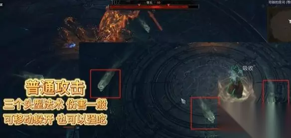 2、接着boss会在其面线的180度范围内释放6道能量波,或者连续释放三次三爆的能力,这个技能伤害很高,注意躲避。