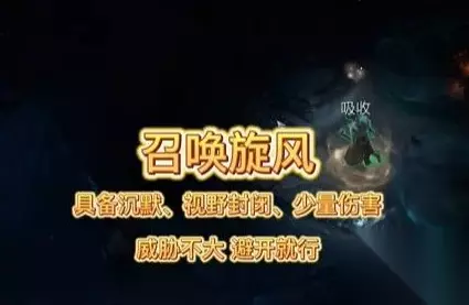 4、然后是随机召唤移动的旋风,具有沉默视野封闭少量伤害,这个技能的话对于玩家的威胁不是很大,就是避开或者走出来就行。