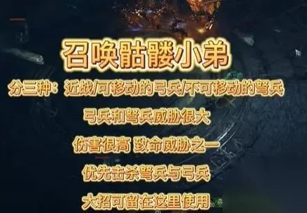 3、接着是随机召唤骷髅小兵,小兵分三种,一种是拿刀或者活的近战,一种是可移动的弓兵,一种是不可移动的弩兵。