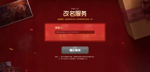 注意事项: 1、单个QQ在多个大区角色,均可免费修改一次。 2、修改昵称后,昵称编号#后面数字,系统会再次随机分配。 3、如参与玩家过多,网页提示系统繁忙,可在稍后尝试。 4、修改成功后,可重新登录客户端查看。