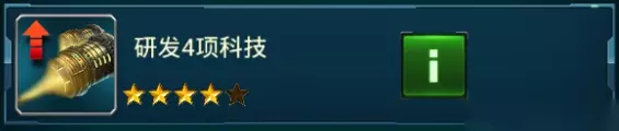 任务等级:4星 任务要求: 研发4项科技 任务奖励: 经验:+945,声望+20,荣誉勋章+3 建造2艘军舰