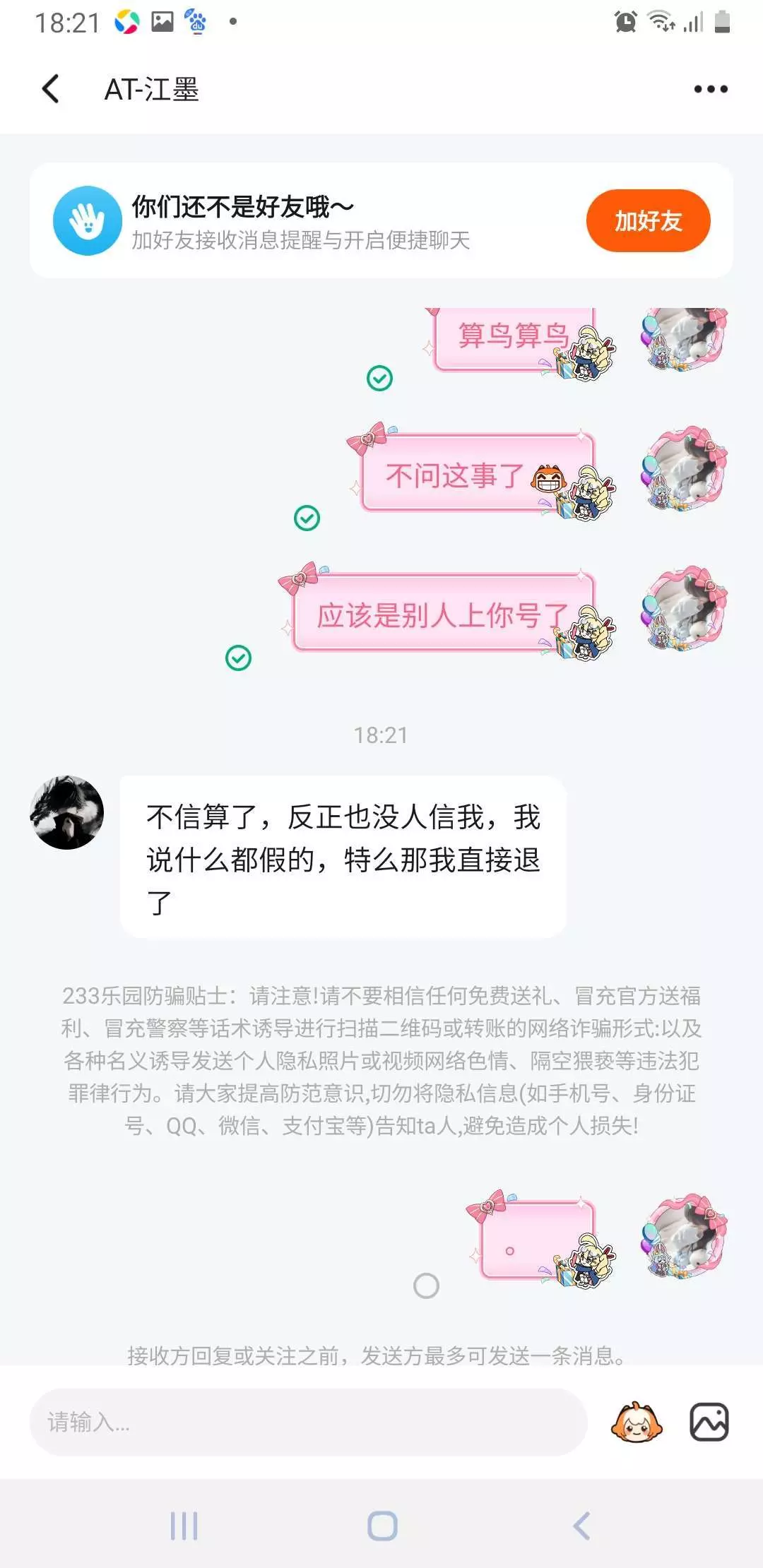不是这对吗?就问一下你中午有没有上线,就好端端给我删了???
