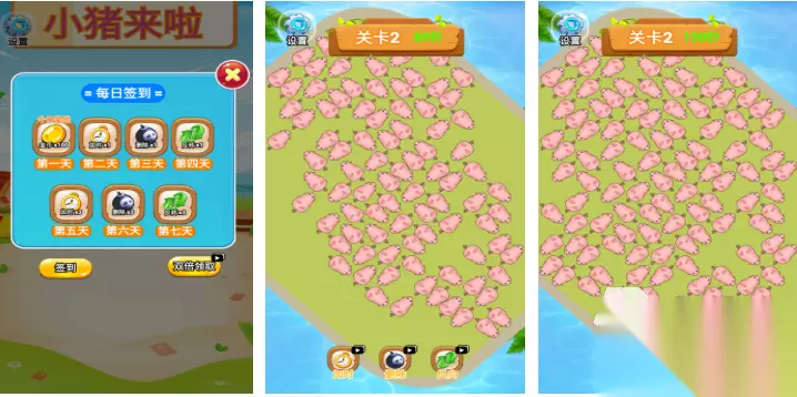 小猪来啦这款消除题材的动物主题游戏玩法个性鲜明,动物题材和华容道玩法的融合可玩性还是很高的,游戏中大量的小羊、小猪这些动物会堵在一起,而玩家的任务则是点触这些小动物进行移动,很特殊的华容道消除互动方式可玩性不错,萌系的视觉效果加上上帝视角的设定趣味性也很强。 高速下载 普通下载 优先233乐园APP下载 3、《历害的小猪》