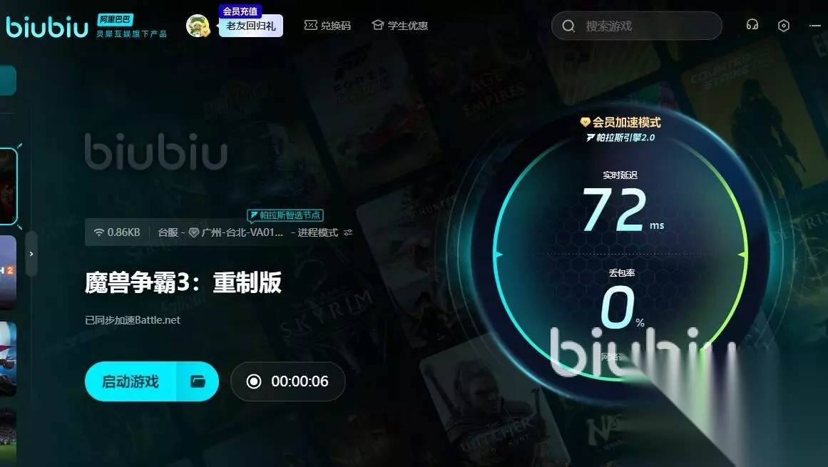 【biubiu加速器】最新版下载 点击下载 biubiu加速器通过全球专线加速与智能进程优化,可突破区域限制实现秒速加载,魔兽争霸3重制版将四大种族的兵种碰撞提升至全新维度,人族骑士的冲锋轨迹、暗夜精灵古树的年轮纹理都经过电影级渲染。在净化斯坦索姆等经典战役中,玩家需要精确把控食尸鬼集火时机与死亡骑士走位,这对网络延迟提出严苛要求。biubiu加速器针对重制版特性开发了专门的加速入口,能提升战役加载速度。如果你感觉biubiu还不错,那么不妨现在就去体验,现在作为新用户注册,就能领到24小时加速时长,所有用户输入兑换码【biubiu不卡顿】可以获得三天加速时长,有了免费试用的时间,你就能耐心地体验biubiu加速器了。