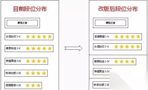 每个大段位下的小段位数量及星星数量变化: