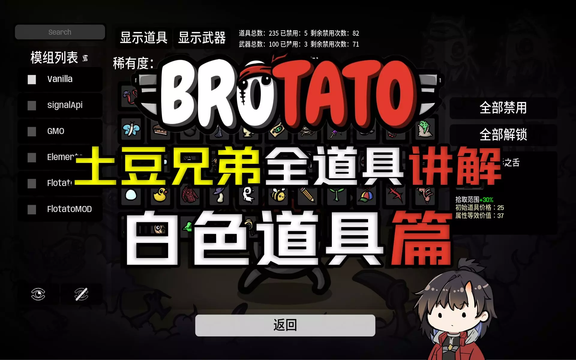 游戏名:Brotato 制作时游戏版本:v1.0.1.3 本期讲解白色道具,之后会继续更新其他品质道具讲解 点评多少会根据自己的游戏习惯带一点自己的主观看法 如…