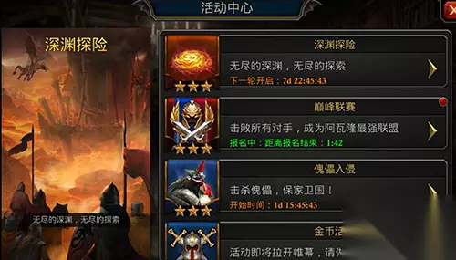 【巅峰联赛开始时间】 在12月版本更新之后,各位领主大大可以进入城市中的活动中心查看巅峰联赛开始日期以及分组情况。