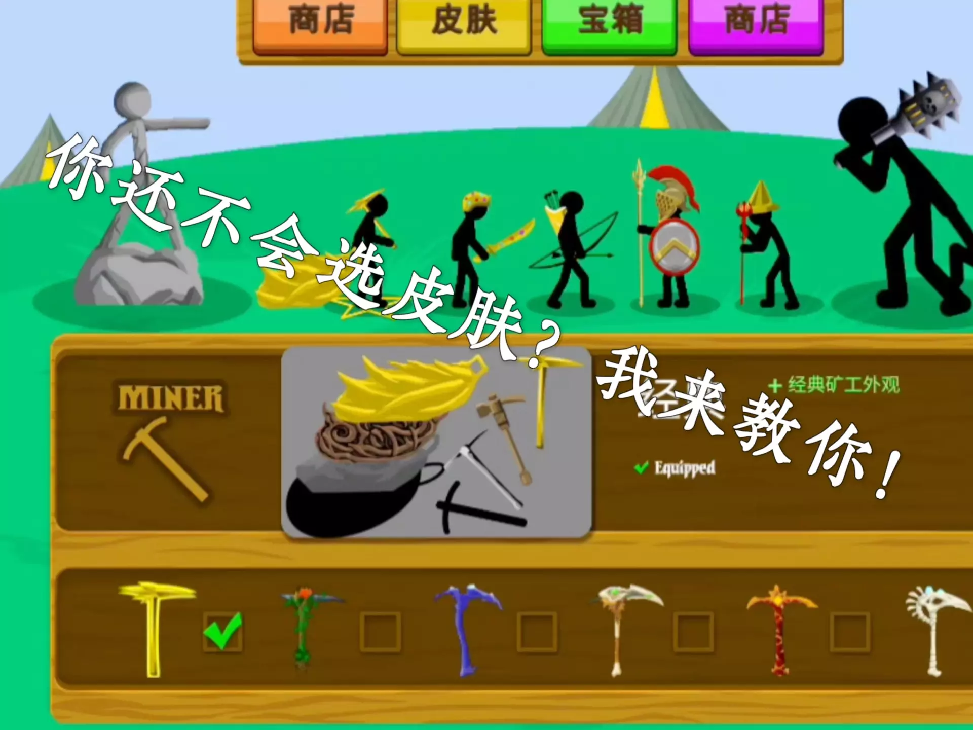 这篇内容为手游《火柴人战争遗产3》的教程,手把手教玩家更换火柴人游戏皮肤,玩家可进入首页定制选项,选择不同火柴人战士和首领的皮肤,让火柴人造型更炫酷。