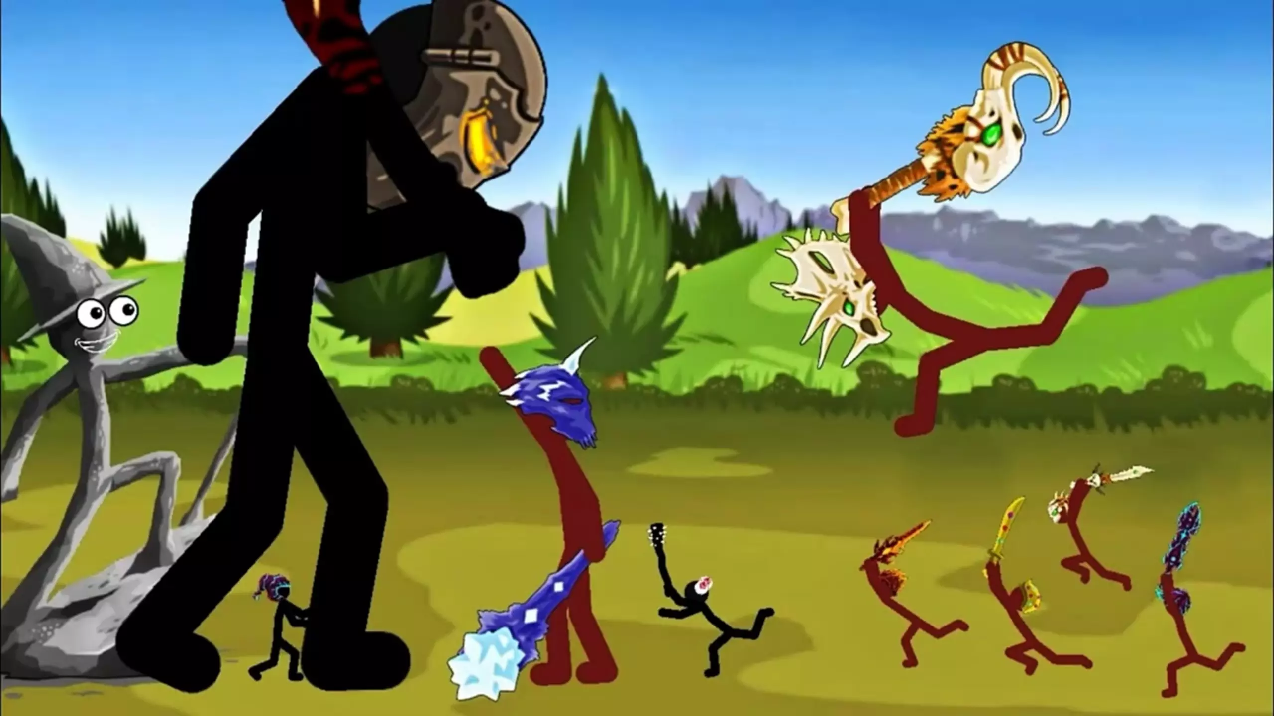这是策略手游《火柴人战争遗产》的相关内容,游戏里我方火柴人为黑色,敌方多为红色,但也存在身份是敌方的黑色火柴人,比如实力强大的狮鹫大帝,展示了游戏的战斗画面。