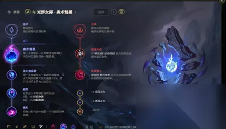 一般来讲光辉主符文会带彗星跟黑暗收割,不过黑暗收割被削很多次了,还是建议带彗星吧。主系带彗星,系带,焦灼,副系带重伤,猎人,小符文可以两个自适应加一个生命值。