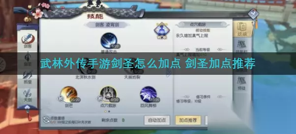 武林外传手游剑圣怎么加点?剑圣加点推荐如上所示,玩家们根据剑圣的加点来操作,可以让剑圣的输出顺序更为顺手。