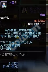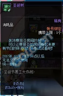 DNF体验服最新更新一览,圣诞节临近,正式服即将推出DNF圣诞节罢工大作战活动,玩家在推荐地下城中击碎圣诞树收集[圣诞糖果],找到藏在阿拉德大陆NPC圣诞雪花精灵和驯鹿精灵兑换[圣诞礼物],开启[圣诞礼物]即可获得[圣诞硬币]