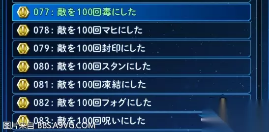 各种异常100次.毒/冻结/フォグ这3个异常推荐工作制作的那3个带异常效果的大炸弹20个.然后找比较容易中异常的附近小怪去扔.我扔的是海岸的三只螃蟹和2只虫子.出**先存档.扔完后存档保存异常的次数.然后回来读取扔炸弹之前的存档出去继续扔.原理和道具图鉴一样.然后另外几个是道具扔不出来的异常.黄毛带上减战套: