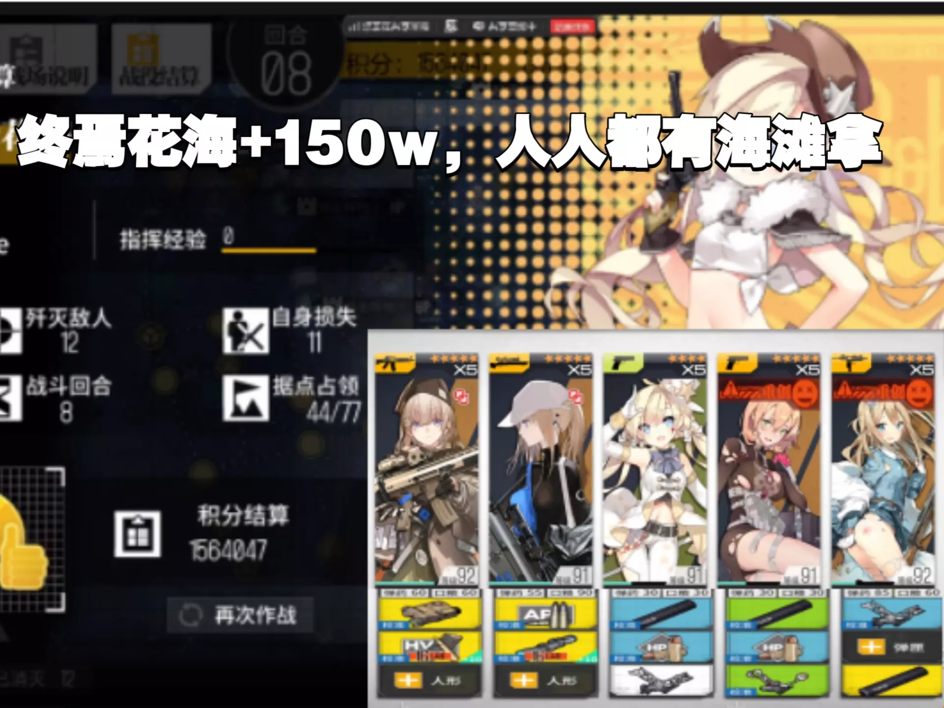 用了刚入坑的朋友的号来打的演示,这张图分区十分明显,而且给了强大的炮击阵地——不是我喜欢的小怪,直接炮击!如果甚至连打boss的队伍和重装都没有的话,大概上限在…