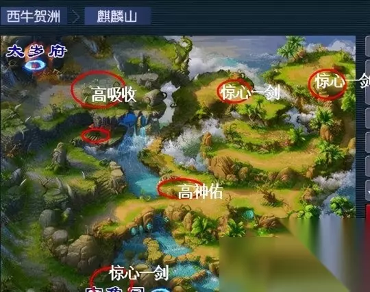 2·长寿郊外场景可以挖到兽决的坐标点有5个,分布在地图两边。