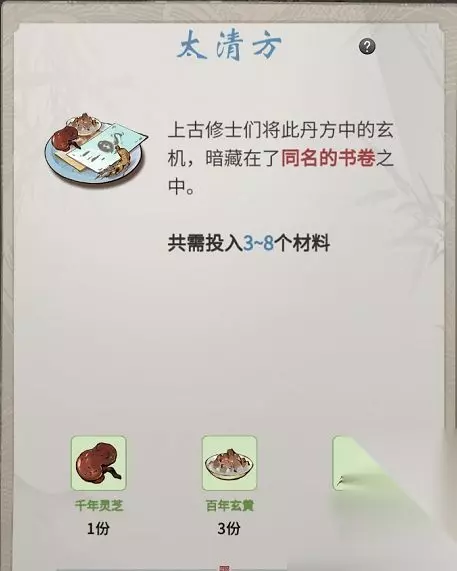 解读:这就是赤果果的提示了,灵芝少一(1)些,相比于其他两(2)种材料,剩下一个自然是(5)了。 太清方