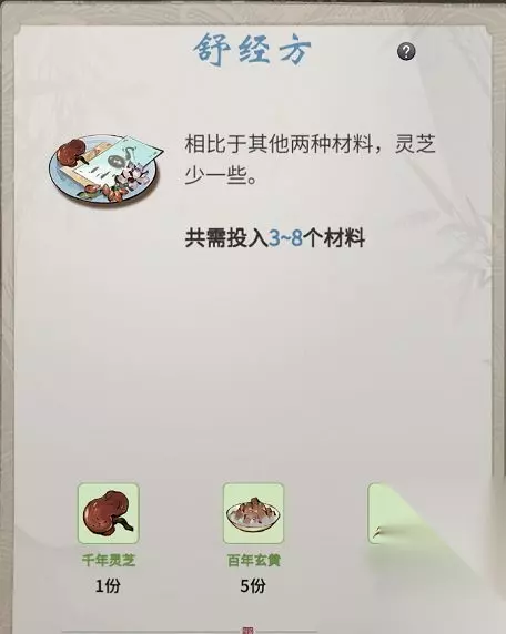 一念逍遥百炼成仙药方第三轮是什么?这些药方拥有很多让人意想不到的地方,在你没有很好收获的时候,你需要认真的去分析才能找到更多有用的信息,确保自己后续能顺利拿到该有的线索。下面就为大家带来一念逍遥百炼成仙药方第三轮配方大全。 舒经方