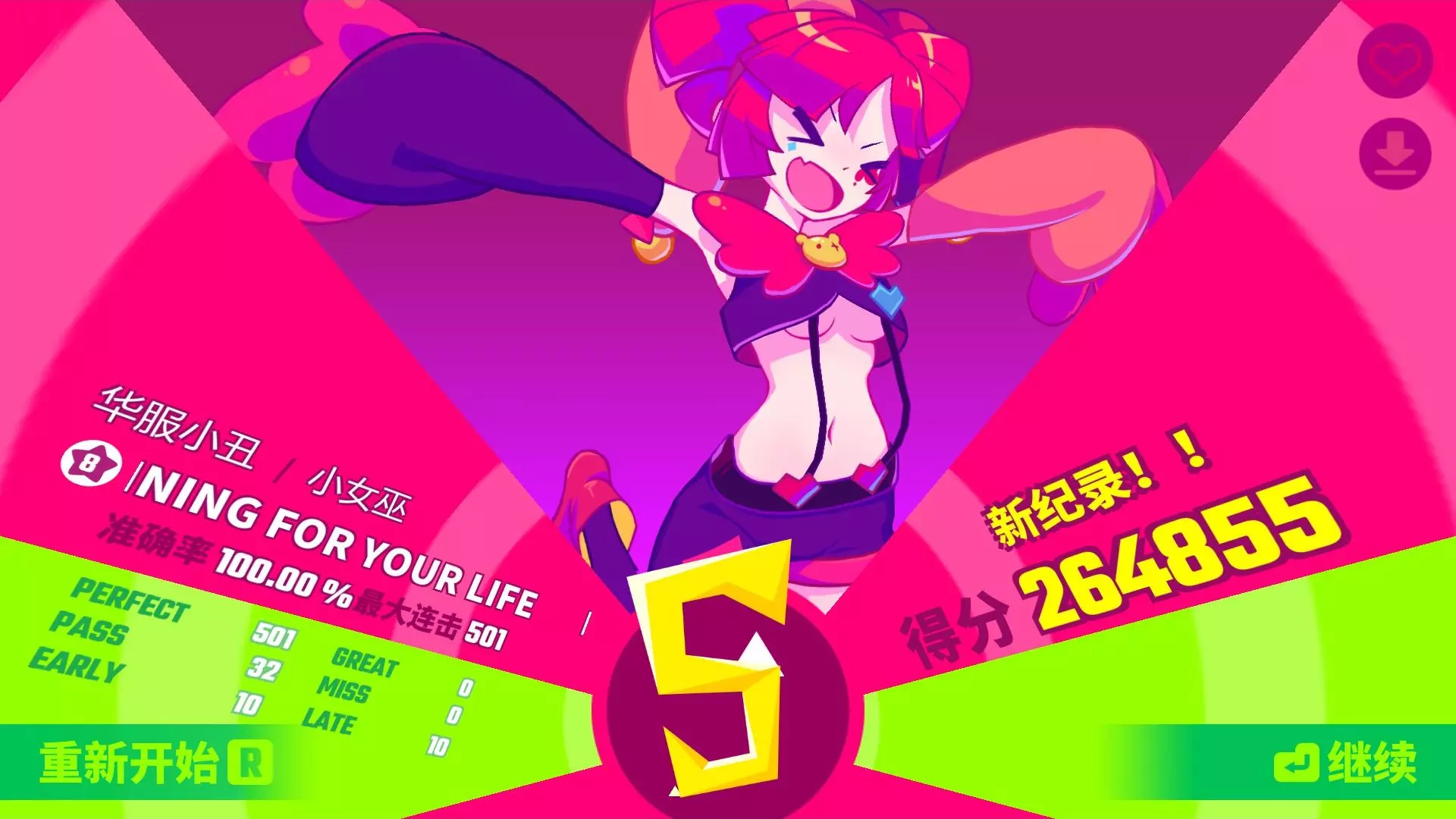 玩家完成了Muse Dash与鸣潮联动曲《RUNNING FOR YOUR LIFE》大触难度的PC端全球首杀,自称打法像多动症,没有技术含量,只是打得早。
