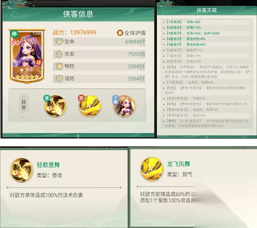 ⑥郡主 郡主作为队伍中的盾奶,不仅能在持续治疗我方侠客同时提升免伤,在队友首次低于一定生命值的时候为其添加护盾,还能为同列侠客承受一定的伤害,有郡主在场那叫一个稳稳的很安心~