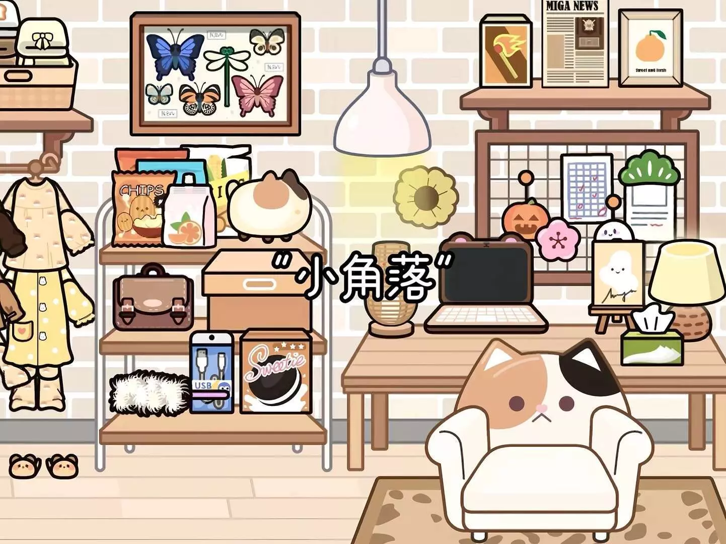 米加小镇黄色系房间布置