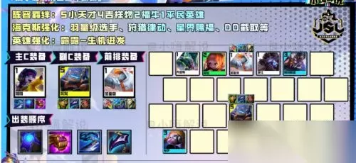 NO.3 秘术怪兽九五 主C卑尔维斯,泰坦+饮血必备,第三件看情况,外面高血量单位多就巨杀,高护甲单位多就轻语,全是脆皮可以无尽或者飓风。副C索尔,尽量青龙刀+法爆必备,第三件任意续航装或AP装均可。主坦扎克,消耗狂徒、反甲、龙牙等任意肉装。