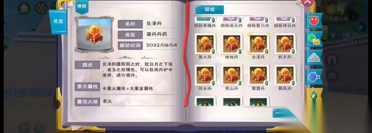 3、兑泽丹配方:中量火属性 大量金属性;例如火芝x2 幻蕊瓣x8。
