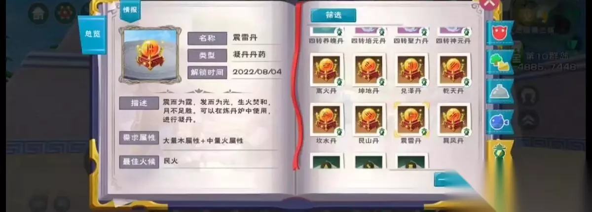 7、震雷丹配方:大量木属性 中量火属性;例如嫩笋芽x8 火芝盖x2。