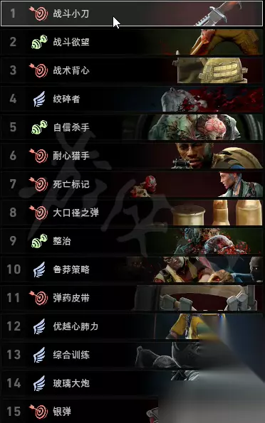 卡组概述: 这套卡组的配卡顺序十分讲究,在前期怪物较弱的时候,先把几张增加伤害的卡片拿上,提高刷怪效率,后期怪物强起来,又补上了生存和续航能力,是近战卡组比较好的选择了。 核心卡牌解析: 战斗欲望 近战流核心卡之一,给战斗提供超高的续航能力,这张卡放第一张,起手就上。 疯脑 近战流核心卡之一,加大量伤害及耐力,并且不会被怪物控制。 击球员就位 近战流核心卡之一,伤害加成十分夸张,必带。 面对恐惧 近战续航必带的卡,可以和战斗欲望叠加。 前蹲! 一张容易被忽视但必须带的卡,不是为了自己,而是为了队友输出方便。 狂战士 近战攻击和攻速加成,并且每次近战杀敌都会获得移动速度提升,是中后期刷尸潮的神器之一。 尖端 近战防御性价比非常高的一张卡,比垫料大衣不知道高到哪里去了。 疤痕组织 高难度带上很赚,低难度带上可以开无双的一张防御神卡。 真实勇气 受到单次超过15点的伤害后会获得一个5秒内回8血的效果,近战带这张卡很赚,因为能频繁触发效果,配合上面的卡回血超高。 快速切枪换弹流卡组