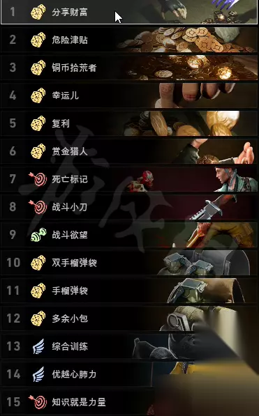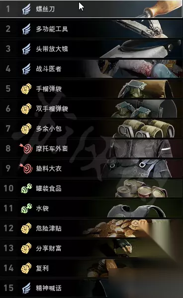 卡组概述: 本卡组的核心功能在于将玩家打造成一个精通辅助的角色,拥有超高使用速度,大量物资携带量,并且能在战场中为团队提供物资支援和投掷物伤害。 是一套适合开黑的卡组,有配合就很强,野队不建议用。 核心卡牌解析: 头带放大镜 和上面两张卡牌都是加使用速度的,是为本卡组后续功能奠基的卡牌,建议将这三张放在最前面,前期就入手。 战斗医者 使用速度包括所有进入第三人称的需要读条的动作,也包括复活,所以同时也加复活速度。属于是铁绑奶妈的卡牌了。 多余小包 和上面两张卡都是加手榴弹的存量,本作中手雷可是能秒特感的超强杀器,本流派唯一伤害方式就是手雷,自然要带足。 危险津贴 后期有效补充铜币的手段,个人低保,有必要带。 分享财富 群体低保,可以和个人低保叠加,算是辅助流比较实用的卡。 复利 利滚利的一张卡,如果开黑,可以让队友每回合把钱都丢给自己,一轮就能滚不少钱,为团队补充各种物资。 精神喊话 拉队友神卡,不过如果不想被debuff影响也可以换成嗅盐。 纯点数刷钱流卡组
