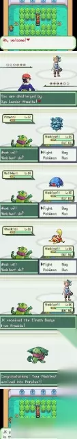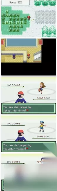 回到道路502图二处 上楼开始三连战 对方精灵全部都平均是9,8级 所以练级很重要