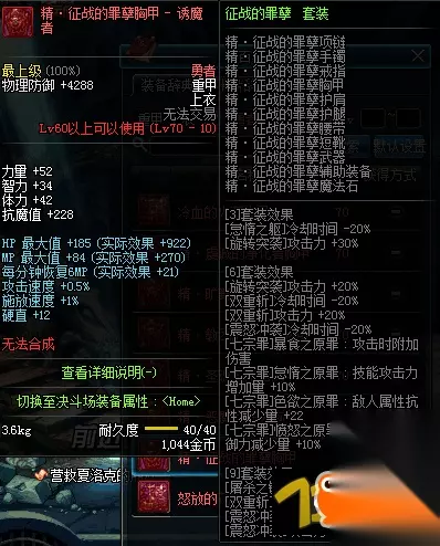 DNF诱魔人异界套装属性大全: