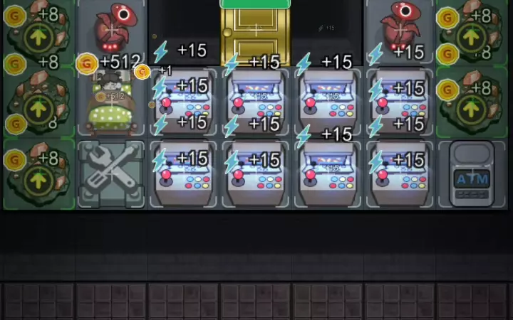 这是游戏《猛鬼宿舍》的相关分享,作者认为在游戏里电线圈和ATM机搭配是很好的组合,还展示了游戏匹配界面、建筑布局、炮台升级等游戏内的操作画面。