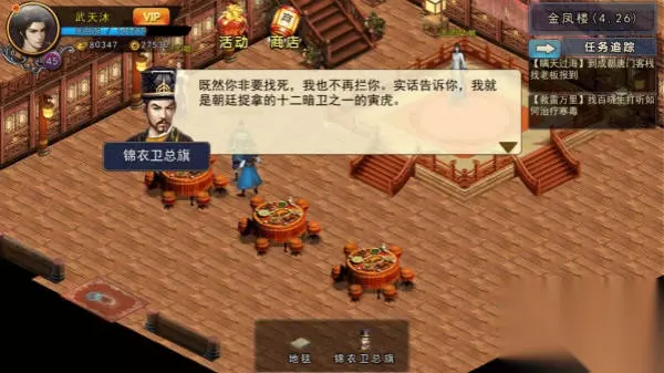 圆圆姑娘:帮忙做三件事告诉你一个小秘密:帮忙教训官府通缉犯(快活林3,9),打赢获得如意腰带;2.送10多鲜花;3.送翡翠禁步,完成后得知青楼内的锦衣卫总旗其实是暗卫之一,上前与大人联络一番感情,大人自曝乃是十二暗卫之一的寅虎,打赢后获得腰牌;