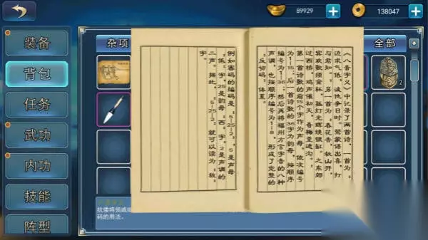 罗贯中:捐给他1万两铜板,告知你《雪竹图》的消息,到武侯祠(7,8)处翻找,获得《雪竹图》,《雪竹图》画技增加50点; 杜先生:连续答对3道题换取《草木谱》,答错会有10分钟的冷却时间,答对后可以用文房四宝到房间内的屏风处抄录,合成后增加棋艺50点; 刘文理:答题每次消耗1000铜板,每次答对给2000+经验,需要连续答对3道题,而且每道题只给2分钟的答题时间,答对后获得《自叙帖》,《自叙帖》书法增加50点;