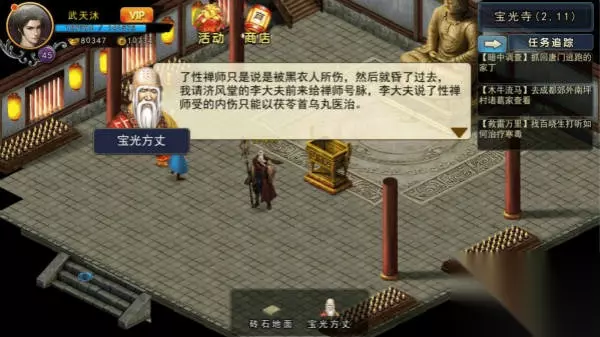 小乞丐:施舍1000铜板10次,帮助通过华容道,获得《青莲剑歌》,《青莲剑歌》增加书法50点和细口瓶子;(实在过不去的也可以选择支付1万铜板蒙混过关) 华容道玩法百度 苏二娘:四大恶人之一,单挑过后获得烧饼歌残页X18; 烧饼歌:加上洛阳酒馆和快活林的一共36残页,集齐后到洛阳装订,随后到沧州悦来客栈交给慧清和尚,将此事禀告给少林方丈,后扫地僧要见你,简直神经,居然让你擦大佛!没办法硬着头皮干吧,沧州杂货店可以买到抹布,到少林寺(22,30)和(20,26)两个地方擦拭,怎么也得一边100多次,后获得坐标位置(40,37),想偷懒不擦大佛直接去这位置门都没有,赶紧乖乖擦大佛来!
