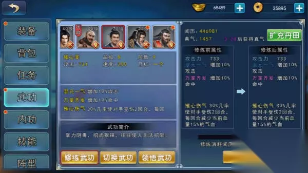找到坐标,搜索到《金钟罩》,学习后金钟罩技能增加30点,后找扫地僧修炼金钟罩,每2000阅历可以增加一点金钟罩技能值。 18.招募文韬