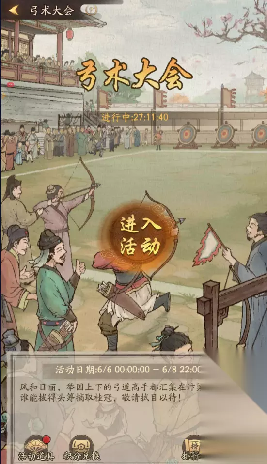v 新增档位:精进基金 1、掌柜在购买赚钱基金,且赚速达到4800万即可解锁精进基金 2、解锁精进基金将获得超值奖励 v 新增活动:弓术大会 1、新增美女服装:【捕快—满弓之艳】,可于活动商店内使用积分兑换获得。 2、身份等级10级可参与,活动期间,玩家可通过购买活动道具【箭矢】参与弓术大会。活动结束后,未使用的箭矢将自动转换为积分。 3、玩家消耗箭矢进行射箭,每次射箭消耗一支箭矢,射箭根据箭矢的种类和命中的环数以及射箭靶子的难度,综合获得对应的射箭积分。 4、单箭分值 = (箭矢基础分 + 命中分 * 难度系数)*箭矢种类系数 + 附加分。其中箭矢系数由箭矢种类决定,木箭,铁箭,柳叶箭,将军箭和轩辕箭的基础分都为300分。 5、命中分由玩家命中的靶子环数决定,分为1-10环,10环为准心;箭矢命中不同区域,得分不同,脱靶零分;难度系数由箭靶的类型决定,难度越高难度系数分越高,其中固定靶难度系数为10,横、纵移动靶难度系数为12,蛇形、环形靶难度系数为15;附加分根据玩家连续命中准心10环次数决定,每次连续命中都会获得附加分。 6、熔炼功能:积分达到5万分可解锁,将不同的种类的箭矢熔炼成轩辕箭。 7、兑换商店:射箭积分可用于兑换道具,每日0点重置道具兑换的次数及消耗;活动结束后,未兑换的积分将保留并可在下次活动开启时继续兑换。 8、排行榜:积分参与排名并赢取排行奖励。奖励需手动领取,活动结束后未领取的奖励不予补发。掌柜们要记得及时领取哦~
