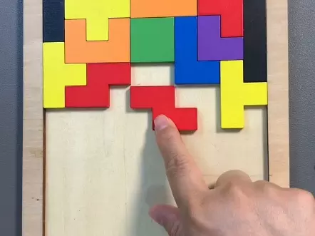 这款Katamino俄罗斯方块拼图,是一款木质益智玩具,玩家可将不同造型的彩色方块依次放入带网格的木质托盘中,完成拼图挑战,能锻炼空间思维能力。