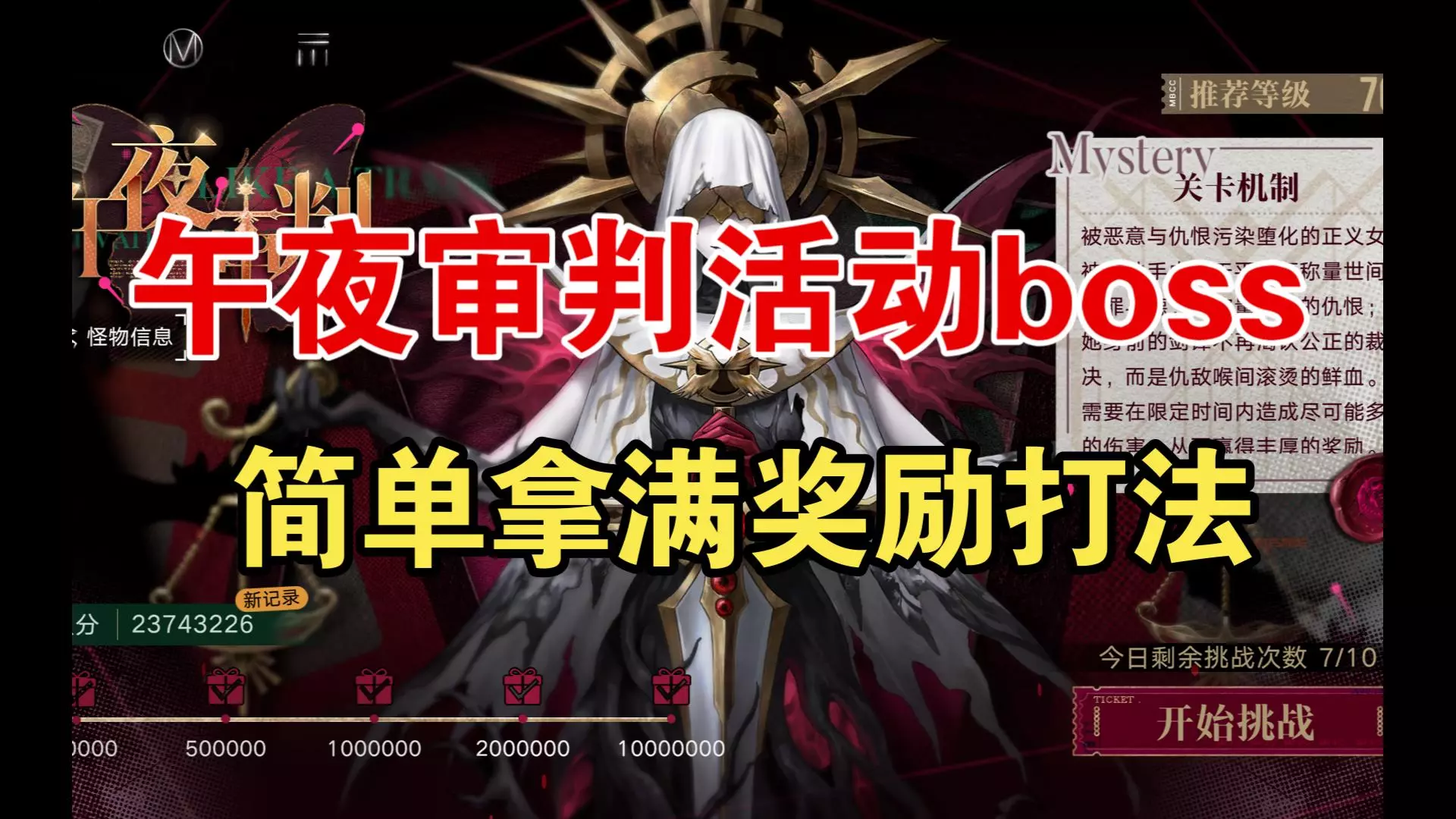 这是《无期迷途》午夜审判活动关卡的打法分享,展示了关卡战斗布局、克莱门汀的烙印搭配,还讲解了战斗中砝码地格数字的应对要点,助力玩家通关该活动关卡。