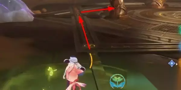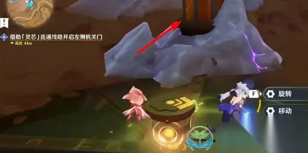 3.6版本借助灵芯连通线路开启左侧机关门完成策略 1、玩家需要来到下图机关解密位置,朝着西北角拾取第一个【灵芯】;