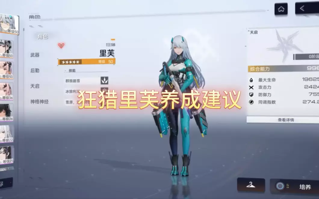 这是《尘白禁区》冰属性大C狂猎里芙的角色攻略,讲解了狂猎里芙的输出核心机制,说明了其命座培养要求:无一命强度低不推荐练,当前版本推荐达到1+1才培养,同时补充后勤选择为底比斯。