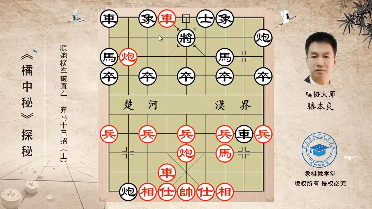 这是棋协大师滕本良带来的象棋运马精妙技法课程,通过实战棋局演示,讲解象棋运马的精妙技巧,助力提升象棋对局水平。