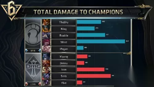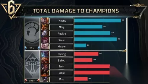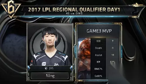 比赛来到IG的赛点局,IG拿到了一套后期团战阵容,而OMG是中期团战,后期分带的阵容。比赛开始,双方打野均是下半部野区开,在比赛前期,IG上野完美压制OMG纳尔的发育,好在OMG在下路的对线拿到领先,但总的来说IG仍是有着不错的领先。 比赛进入中期,OMG依靠着下路组合的优秀发挥,不停地带推塔节奏,缓住了前期压力,并拿到关键的土龙、火龙。但是,在22分钟时,IG试探打大龙被OMG阻止,IG转而去抓上路纳尔,此时OMG选择强行rush大龙,但是大龙再度被酒桶抢下,IG气势大振一连击杀了OMG四人,随后轻松拿下OMG中路水晶,奠定胜势。 随着比赛的进行,IG双C越来越强,IG更进一步的扩大优势,并成功将OMG三路拿下。最终,携带着三路超级小兵,IG成功一波结束了比赛3-0战胜OMG,成功挺入预选赛第二轮,恭喜IG!同时也很遗憾OMG未能及时找回状态,结束了今年的征程。 【输出截图】