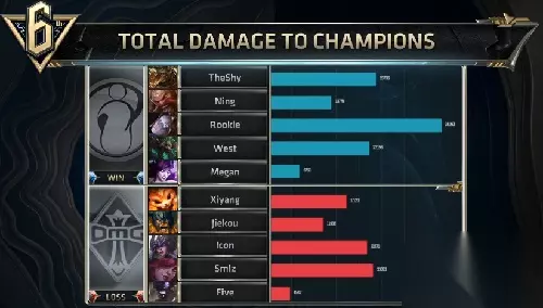 比赛来到第二局,IG拿到了与上一局非常相似的阵容,OMG是三保二的阵容。在比赛前期,依靠着上野强势,IG依靠着上野的强势,建立起优势,并帮助己方中路卡萨丁完美发育起来。 比赛进入中期,IG牢牢掌握着进攻的主动权,持续给予OMG压力。虽然在23分钟时,OMG找到机会在上路接连击杀IG四人,OMG顺势开大龙,但是却被奥拉夫用命抢下,OMG丧失了与IG争夺的主动权。 之后的比赛,IG迅速的将领先扩大,即使他们在打大龙被酒桶抢下,卡萨丁被击杀的情况下,IG依旧赢得团战,稳超胜券。最终,IG将OMG三路破掉,并开启团战完成0换5后,第二局再取一胜,拿到赛点! 【输出截图】