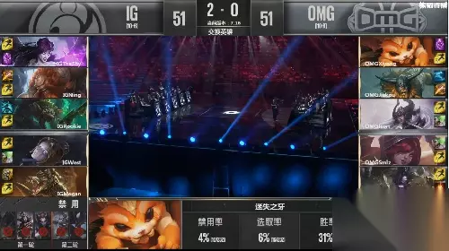 IG使用出了一套前期上野带节奏,后期中下强势的团战阵容,而OMG是三前排的铁桶阵容。双方打野均是红buff野区开,在比赛前期,IG依靠着上野的强势,帮助己方杰斯完美压制OMG大虫子的发育,让己方杰斯解放出来,帮助队伍快速的推塔,IG依靠着阵容前期的强势,拿下不错的领先。 比赛进入中期,IG持续扩大领先,但是在21分钟时,IG强行rush大龙,酒桶将龙抢下,OMG利用IG阵容分散直接开起团战,完成1换3,一举扭转前期劣势。之后,OMG推进IG下路更是开起完美团战,将IG上中野击杀,随后带掉IG下路高地。 然而,比赛再次发生反转,IG抓到一波机会,趁OMG推进中路撤退不及,IG直接开起团战,发条大招直接将卢锡安拉残,霞闪现倒钩收获三杀,IG完成0换4,果断从中路一波结束了比赛,首局先下一城! 【输出截图】