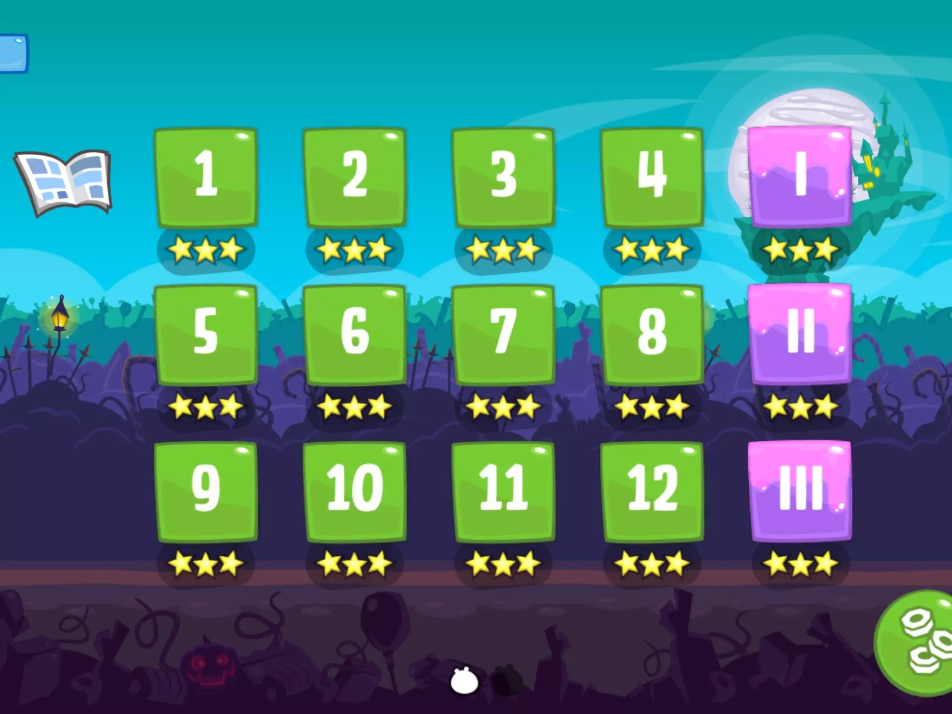 3-1关键道具气球登场,在3-2和3-4还登场了两个一组的和三个一组的,就是可以让挂着的物体飞起来,气球本身碰到墙壁立刻破掉,点击下面的按钮主动引爆一个,同时第一个场景机制风力系统登场,把物体朝风的方向吹,不过这个机制在本章出现的不多,3-9沙袋登场,用来辅助气球的道具,平时挂着增加重量防止飞起来,关键时刻点击抛下减轻重量,在奖励关里有两个一组的变种,3-15螺旋桨登场,刚出场就给禁了不知道什么意思,简单粗暴的加速道具,相当于正面版的风扇,也是可以被引擎强化的,3-17滑翔翼和机尾登场,至此捣蛋猪终于是可以造飞机了,都是让车拥有惯性可以滑翔,在奖励关里也有铁制的变体,3-25旋翼登场,螺旋桨的大号版本,可以直接带着车飞起来,当然也是可以被引擎强化的,3-29火箭登场,史诗级加强版汽水瓶,无论是威力还是持续时间都是极大加强,就是这玩意实在太吵了 3-16十七分钟,纯纯的出生关卡,难点主要在星星盒子,因为需要带着气球穿梭前面的隧道,这个气球需要五个才能带飞车,期间碰掉一个都不行,然后这五个气球在隧道里就算带上沙袋照样会摇摇晃晃的,碰掉一个之后就飞不上去了,3-19十分钟,视频中这个一次三星的打法非常看运气,主要是也想不出什么好的打法,禁用滑翔翼,最后成功录像也是运气爆棚,3-27十六分钟,微操关,拿星星盒子可以练,怎么下去最难,他这个地形还特意挡住终点,而且这个落下去不能快也不能慢,就容易手忙脚乱点错,时间也是极限,3-IV二十一分钟,目前捣蛋猪最难关卡,1-VIII没这恶心,难点没有任何技术含量,就是拿左边那颗星时需要飘上去一个超长的隧道,飘上去要花一分钟时间,就这玩意还必须分两次三星,M6-3找到同类了