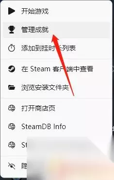3.找到你想要解锁成就的游戏,并右键点击管理成就。如图所示