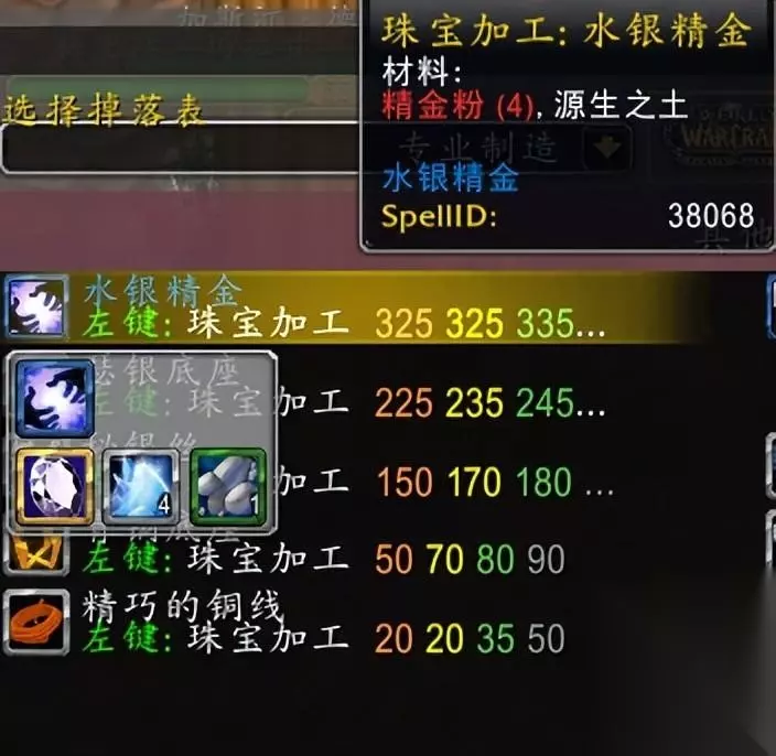 第一个水银精金:这个东西由源生之土和4个精金粉合成,精金粉是通过珠宝加工选矿分解出的一个材料,每5个精金矿石可以产出一个精金粉,和蓝色以下的珠宝宝石,到了p5阶段由于太阳之井会新出很多制造业的装备,其中项链和戒指部位需要大量的精金粉,所以如果是珠宝加工的,完全可以准备几个自己用。