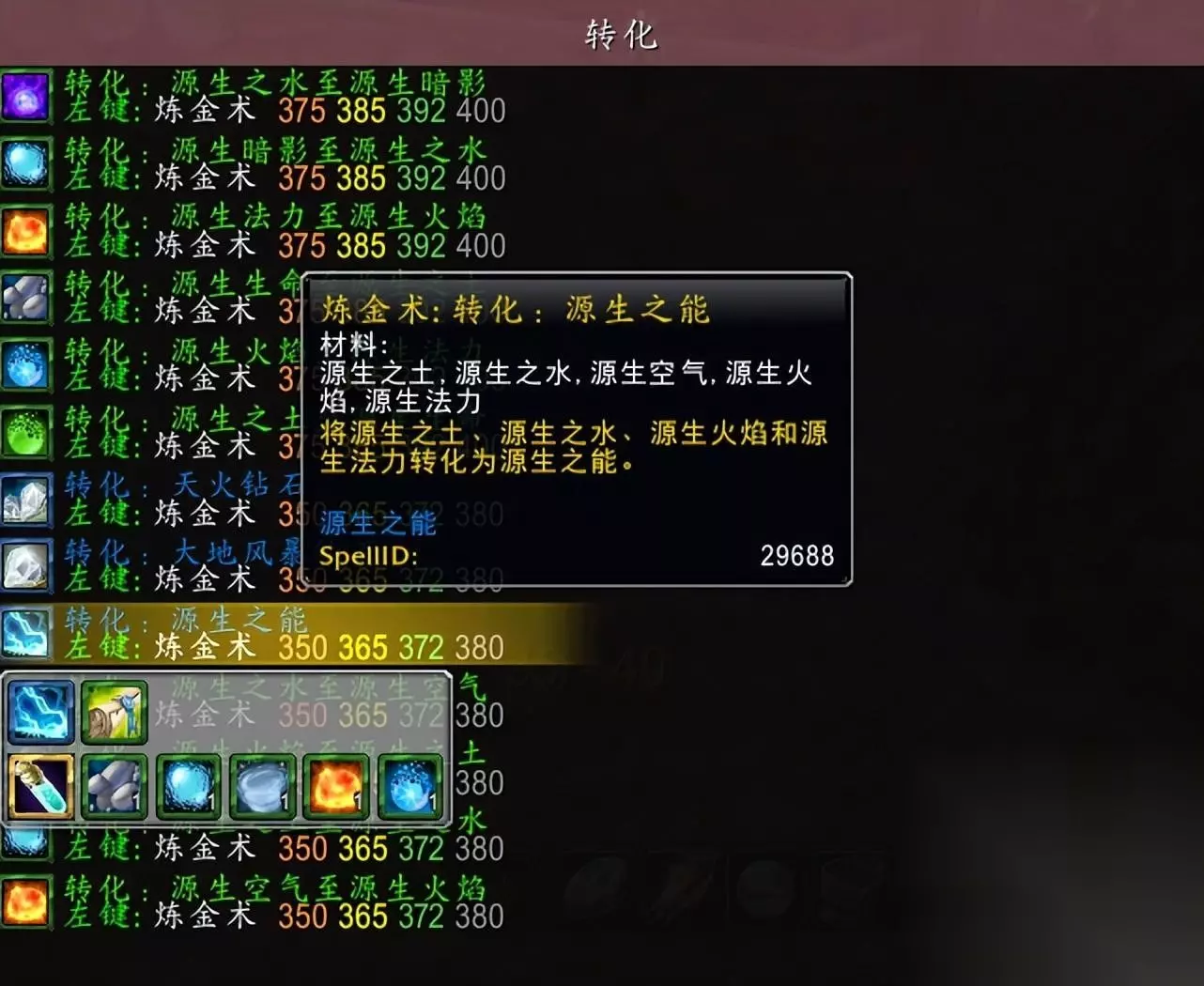 第二个源生之能:这个材料是炼金转化的,每20小时只能转化一个,其中转化大师一次可以随机转化出1-5个。这个材料在当前阶段其实没有什么用量,但是在p5阶段这个东西的使用量就起来了,因为太阳井掉落的皮甲和锁甲的衣服,基本上都需要源生之能,而且一次需要8个。那么大量玩家制作这个衣服的时候,这东西的价钱可能就会上涨,因此在当前阶段如果是盗贼或者猎人等职业,可以提前准备制作材料。